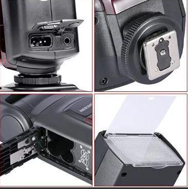 (Note: For flash, carry pouch, 4 AA Batteries and Remote only. No diffuser attachment and Single-Contact Hot Shoe) Please see the photos.