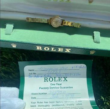The watch on the right comes with box and official Rolex service record