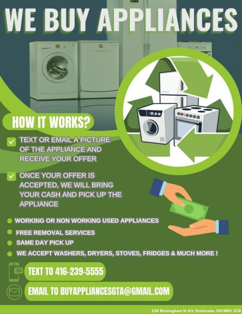 WE BUY YOUR USED WORKING OR NON WORKING APPLIANCES